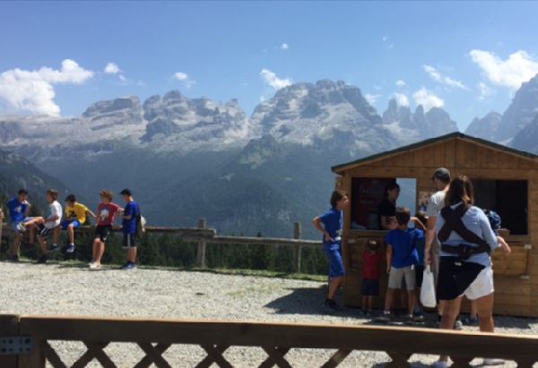 Ieri, nello splendido scenario di Malga Ritorto, che considero – dal punto di vista panoramico – uno dei posti più’ belli di Campiglio, ho trovato un chiosco adibito a bar proprio davanti allo splendido panorama che si presenta ad un visitatore.