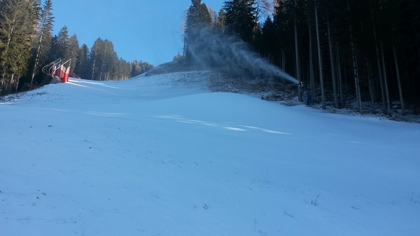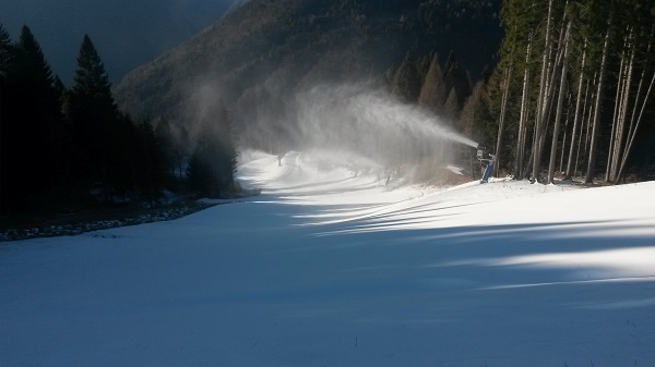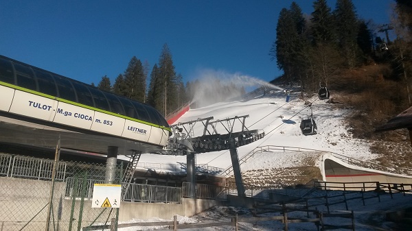 Grazie anche alle bassissime temperature delle ultime 24 ore, i cannoni lungo la pista Tulot Audi Quattro stanno sparando molta neve, e di qualitÁ eccellente. Probabilmente non saranno sufficienti altri due giorni, ma ormai siamo prossimi all’apertura della pista, per lo meno della variante da Fossadei. Si sta innevando anche la parte alta (la più emozionante) anche in vista della quarta tappa della Vertical Up, in programma il 28 gennaio 2017. Ecco alcune fotografie scattate oggi lungo la parte bassa della pista Tulot.