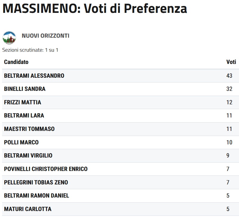 Boom di preferenze per Alessandro Beltrami: il 50% dei votanti a Massimeno (43 su 86)!