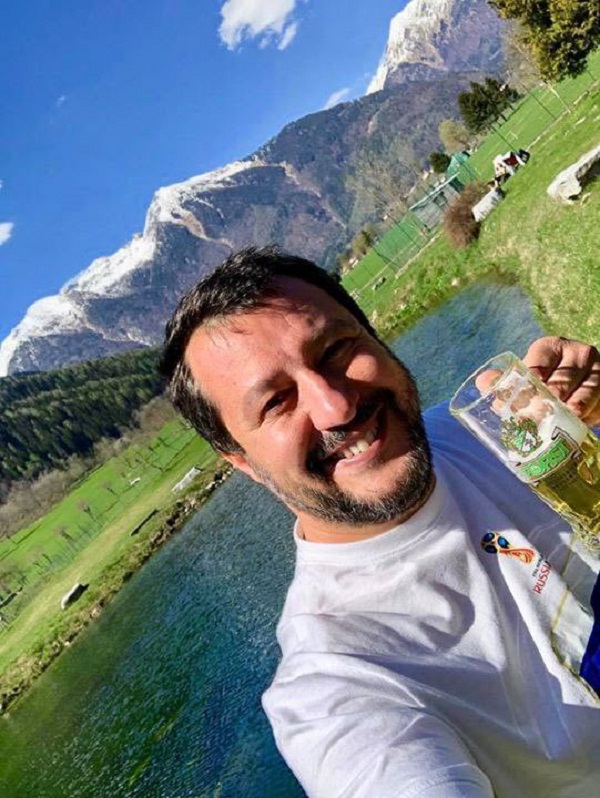 “Buon pomeriggio Amici, qualche ora di relax e aria buona in questo splendido paesaggio trentino! Voi che fate? Vi abbraccio.” Questo il twitt del vicepresidente del Consiglio Matteo Salvini, che ha voluto passare qualche momento di relax in val Rendena a Pasqua con i due figli. Nell’immagine si vede mentre brinda con una birra in mano sulle rive del lago Mago a Caderzone. Fonti non ufficiali lo segnalano all’hotel Centro Pineta. Se non vi sono impegni improvvisi di governo, dovrebbe fermarsi fino al 23 aprile. Lunedi 22 sara’ in piazza A.Collini a Pinzolo alle 11 per avviare la campagna per le prossime elezioni europee. Saranno presenti tutti i leader della Lega Trentino, in primis l’onorevole Diego Binelli e l’assessore Roberto Failoni.