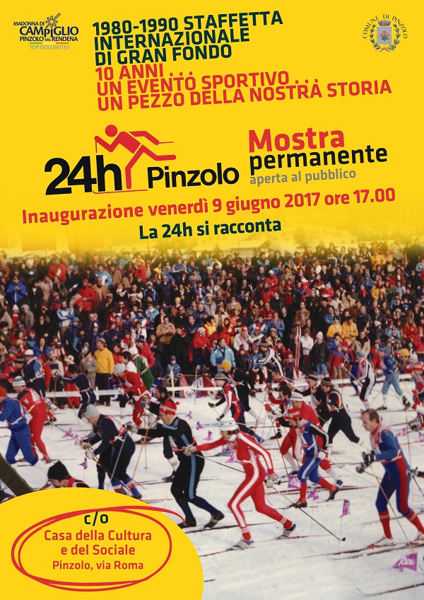 Venerdì 9 giugno 2017 alle ore 17.00, presso la Casa della Cultura e del Sociale di Pinzolo, si terrÁ l’inaugurazione della mostra permanente “24h Pinzolo” dedicata ai 10 anni della “Staffetta Internazionale di Gran Fondo”, storica gara di fondo che si è svolta a Pinzolo dal 1980 al 1990.