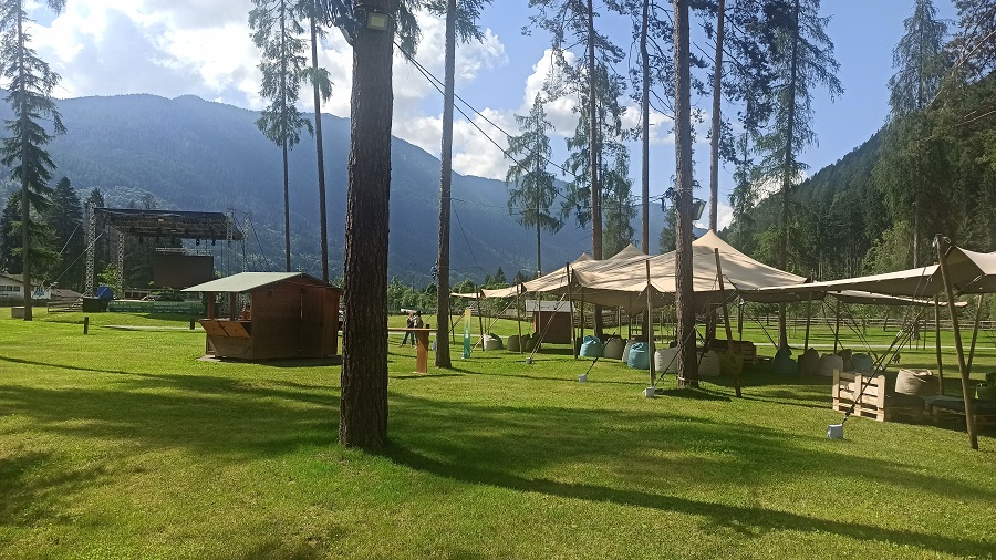 Fervono i lavori di allestimento del parco della musica alla Pineta di Pinzolo. Nel pomeriggio dalle 17.30, con l’esibizione dal vivo dei “Satomi Hotnight” e l’aperitivo rustico, prenderà il via la 4 giorni “Rock e altro” di Pinzolo. Questa nuova formula di inizio estate prevede importanti momenti di musica dal vivo, che vedranno il culmine con le esibizioni dei Tiromancino e di Francesco Sarcina de Le Vibrazioni, alternati ad esperienze originali in luoghi insoliti (vedere il programma dettagliato). E l’arrivo di un promontorio anticiclonico garantirà un tempo molto soleggiato per tutto il fine settimana, con un significativo aumento delle temperature. L’estate sta arrivando anche a Pinzolo, a ritmo di musica rock!