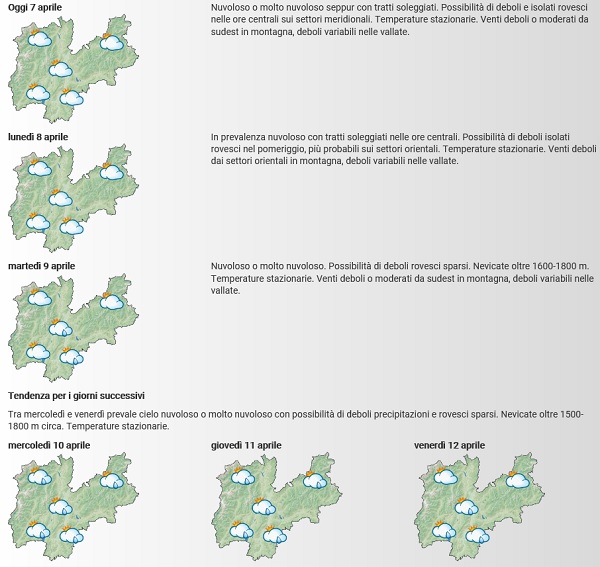 7 aprile 2019 – Previsioni MeteoTrentino.it