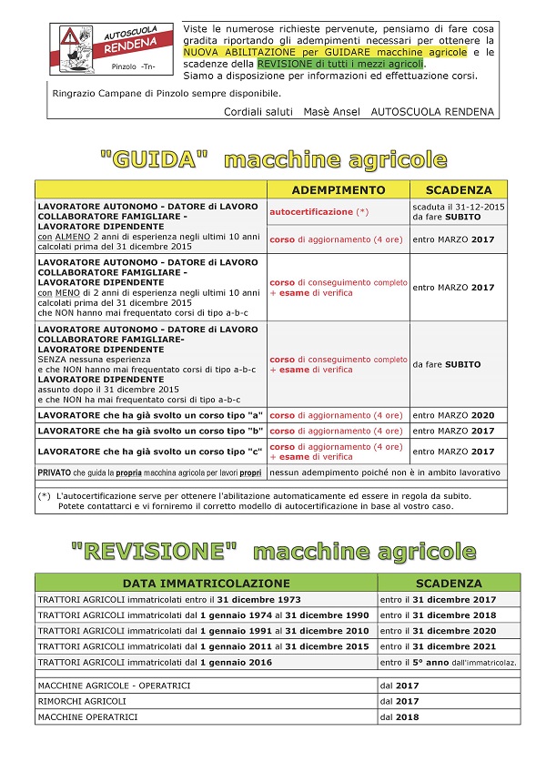 • Nuovo patentino macchine agricole e scadenza revisione trattori