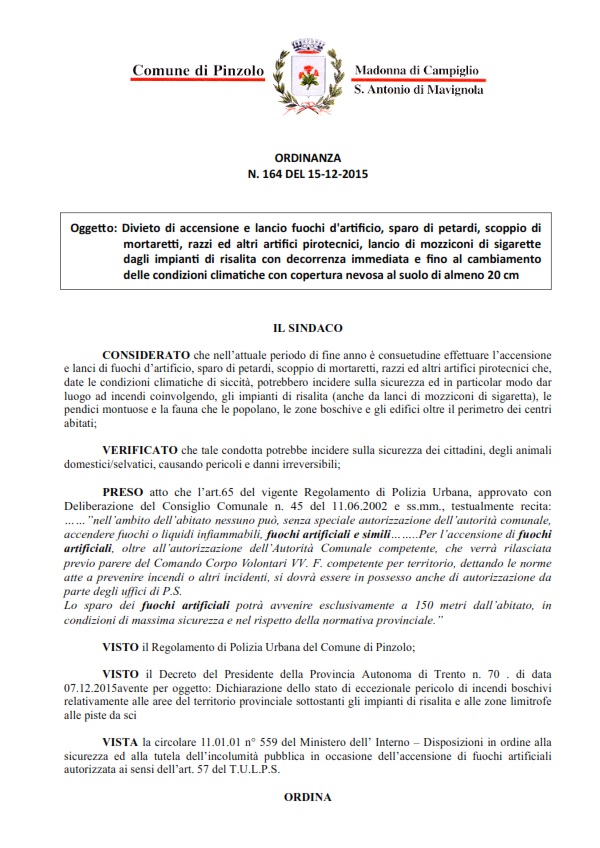 Ordinanza sul divieto di fuochi d’artificio: GRAZIE SINDACO!