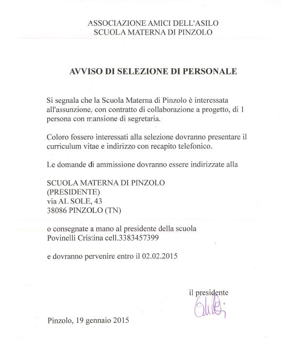 • Pinzolo: Avviso di selezione personale