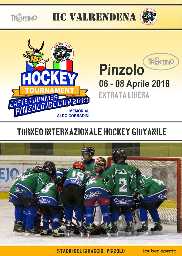Per il secondo anno consecutivo il Palaghiaccio di Pinzolo ospiterÁ il torneo internazionale giovanile di Hockey su ghiaccio Easter Bunnies Pinzolo Ice Cup Memorial Aldo Corradini, torneo per squadre Under 10 e Under 12.