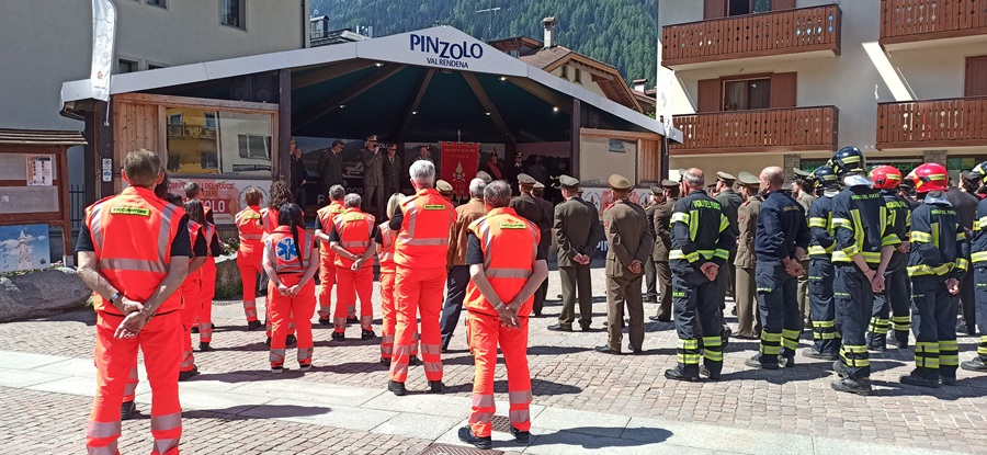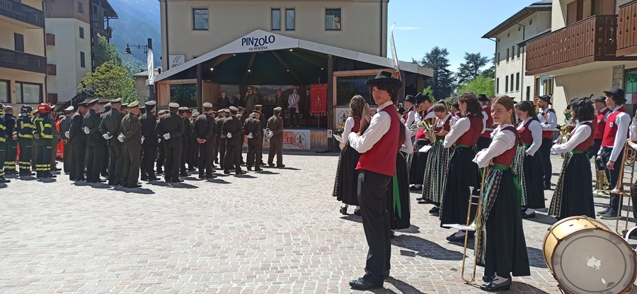 Sul palco d’onore numerose autorità civili e militari, tra cui il Sindaco di Pinzolo, il Comandante dei Carabinieri, il Presidente della Federazione dei Vigili del Fuoco Volontari della Provincia di Trento Luigi Maturi, e il Comandante del Corpo di Pinzolo, Luca Cereghini. A fare da cornice all’evento, una piazza con molti cittadini, volontari dei Vigili del Fuoco di Pinzolo e delle stazioni limitrofe, i Volontari del STI Pinzolo-Alta Rendena guidati dal presidente Antonio Caola, e la Banda Comunale di Pinzolo.