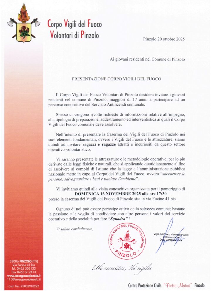 • Pinzolo Domenica 16 novembre Presentazione ai giovani di Pinzolo del Corpo Vigili del Fuoco