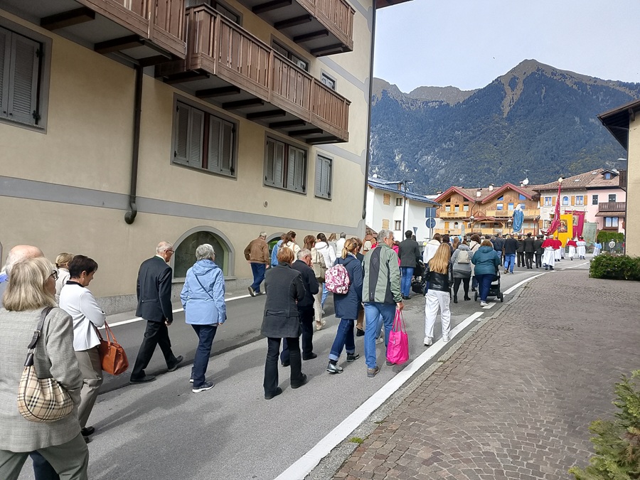 Pinzolo, 5 ottobre 2025 – Si è svolta questa mattina, come da tradizione, la processione della Madonna del Santo Rosario per le vie di Pinzolo. L’evento ha preso il via al termine della Santa Messa delle ore 10.30, celebrata nella chiesa arcipretale di San Lorenzo.