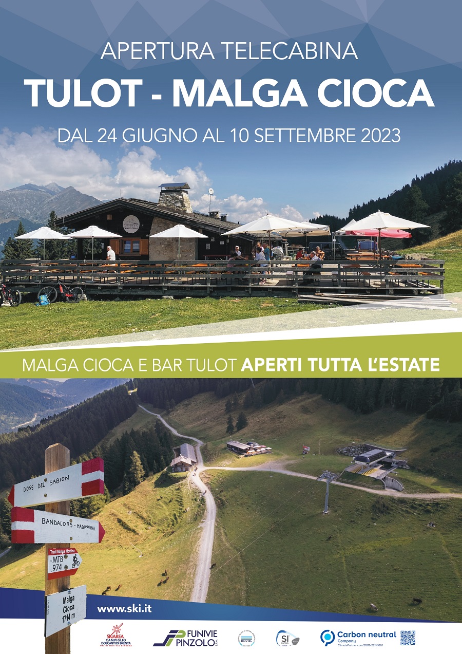 Sabato 24 giugno aprirà la Telecabina Tulot-Malga Cioca. Questo l’orario di apertura: 08:30-12:50/14:00-17:20.