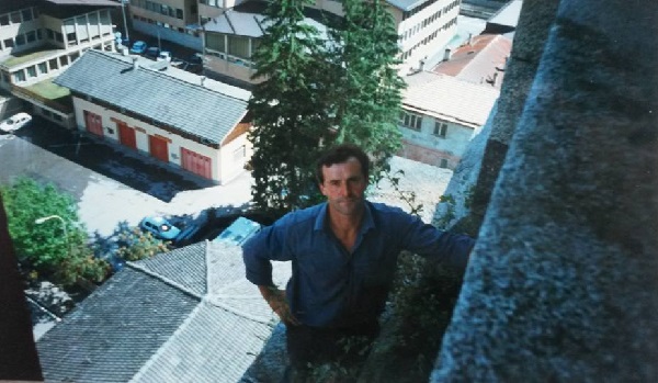 Giacomo Bonapace in cima al campanile di Pinzolo