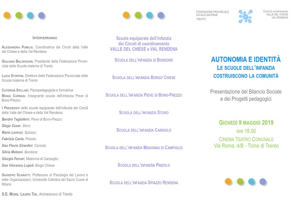 Presentazione del Bilancio Sociale e dei Progetti pedagogici delle otto scuole equiparate dell’infanzia dei Circoli della Valle del Chiese e della Val Rendena associate alla Federazione provinciale Scuole materne di Trento.