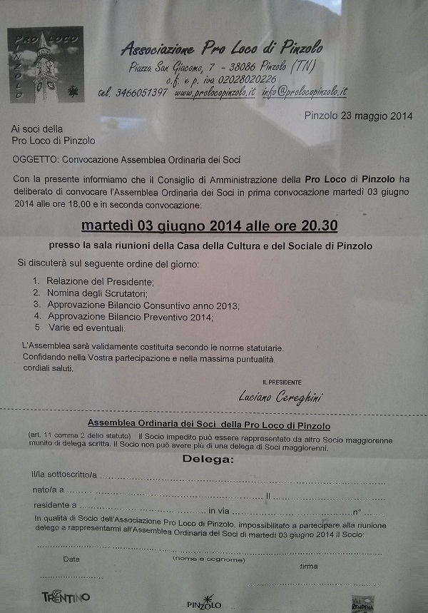 • Pro loco Pinzolo – Assemblea martedi 3 giugno 2014