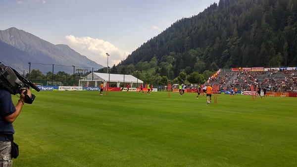 Quasi 3000 i tifosi che hanno raggiunto lo stadio Pineta per assistere alla prima seduta di allenamento, approfittando della bellissima giornata di sole. Nonostante i Campionati Europei in corso e la recente Coppa America privino le grandi squadre di alcuni dei loro pezzi pregiati, a Pinzolo non mancano i campioni. Il più acclamato dai tifosi è stato capitan Francesco Totti, che si è concesso amabilmente per la firma di tantissimi autografi. Poco prima delle 18 un boato ha accolto l”™ingresso in campo di Luciano Spalletti, mentre la squadra si è dedicata inizialmente ad un lavoro fisico in palestra. La seconda parte dell”™allenamento si è svolta sul campo In serata la presentazione, in piazza Carera, del libro Goccia “La Grande Roma di Liedholm”.