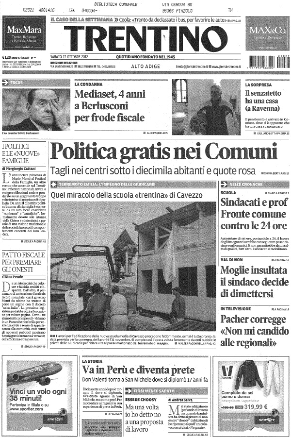 27 ottobre 2012 – Quotidiano Trentino