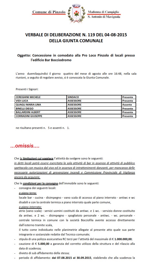 VERBALE DI DELIBERAZIONE N. 119 DEL 04-08-2015 DELLA GIUNTA COMUNALE >>>