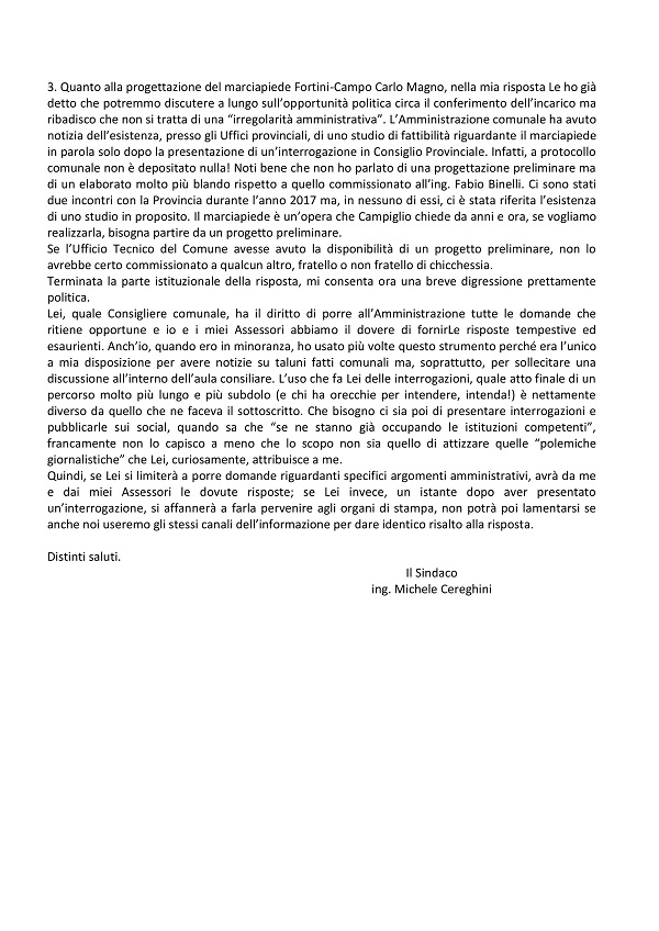 Risposta a lettera di Luciano Caola dd. 09/02/2018 prot. 1771