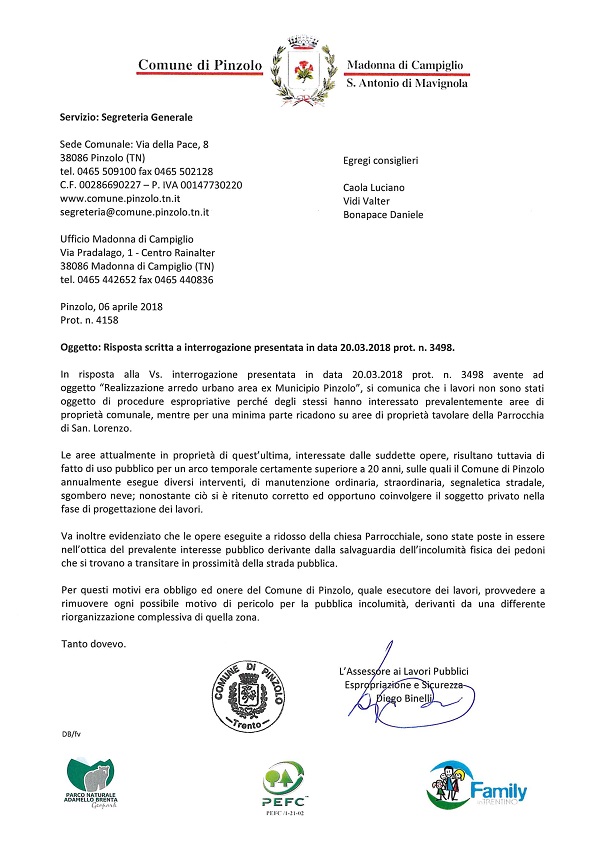 • Risposta dell’assessore Binelli sull’arredo urbano