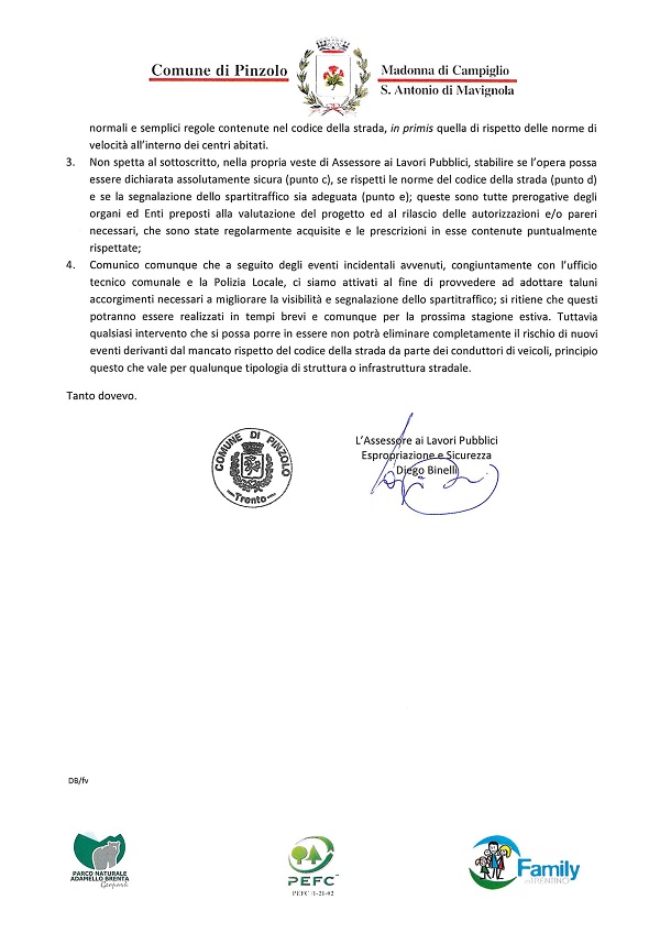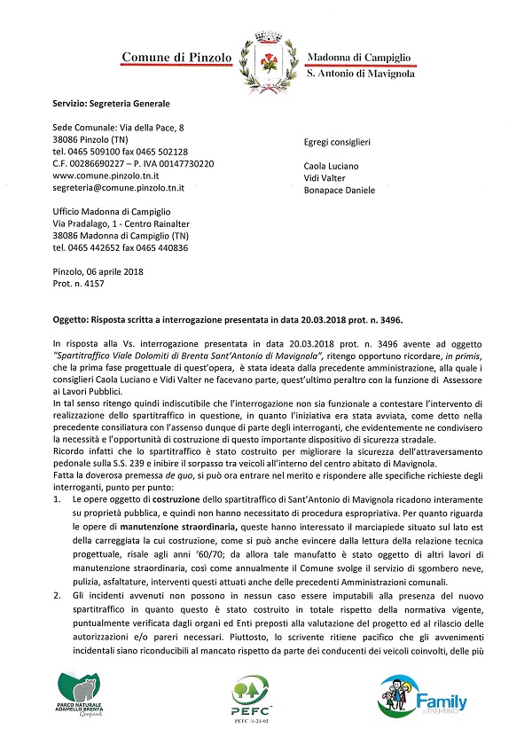 • Risposta dell’assessore Binelli sullo spartitraffico