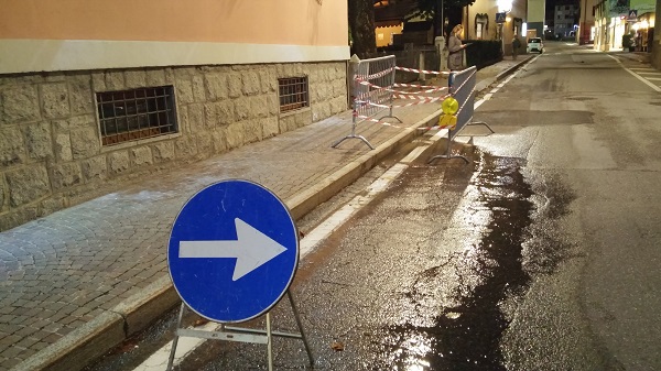 Domenica 21 agosto, lungo la statale che attraversa Pinzolo (Corso Trento) all’altezza dell’hotel Wanda, si è probabilmente verificata una rottura dell’acquedotto. Una certa quantitÁ di acqua (limpida) sgorga dall’asfalto, nei pressi del marciapiede. La zona è stata prontamente transennata.