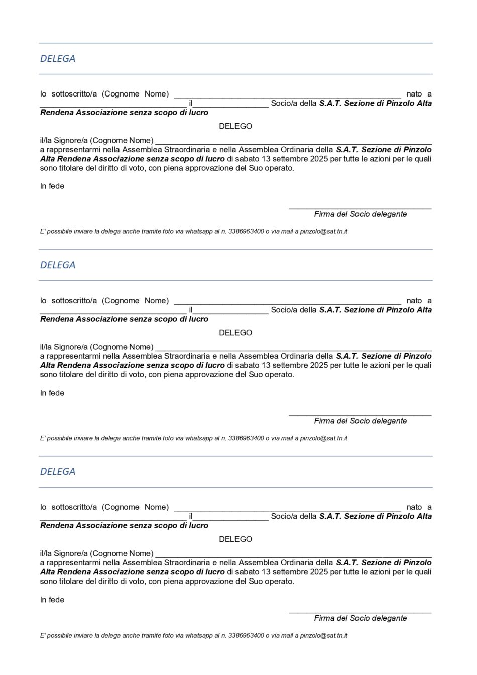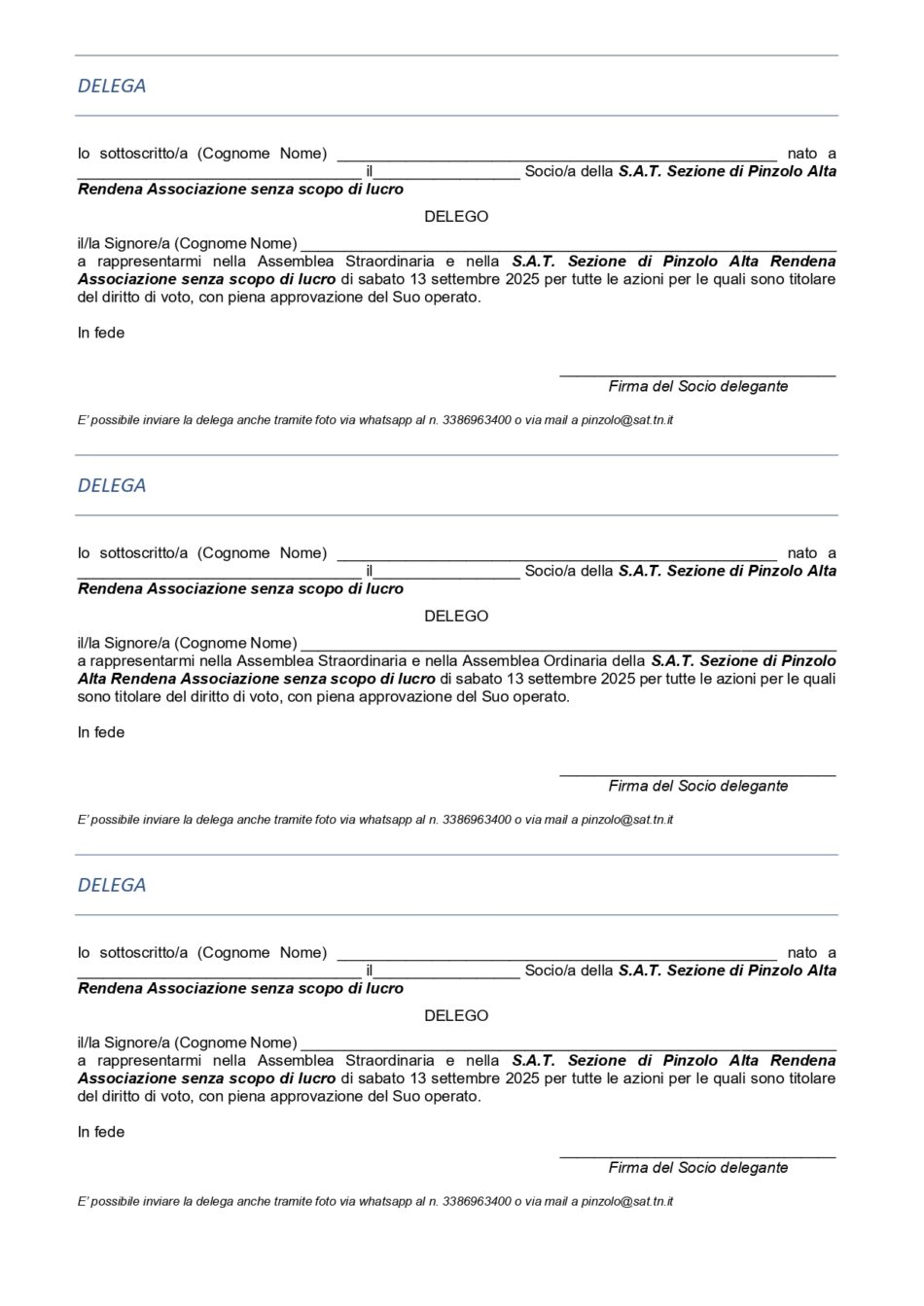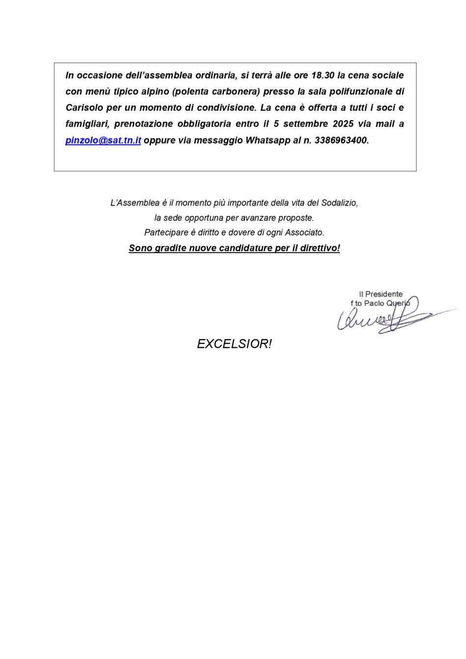 Sabato 13 settembre ore 20 – CONVOCAZIONE ASSEMBLEA STRAORDINARIA E ASSEMBLEA ORDINARIA DEI SOCI