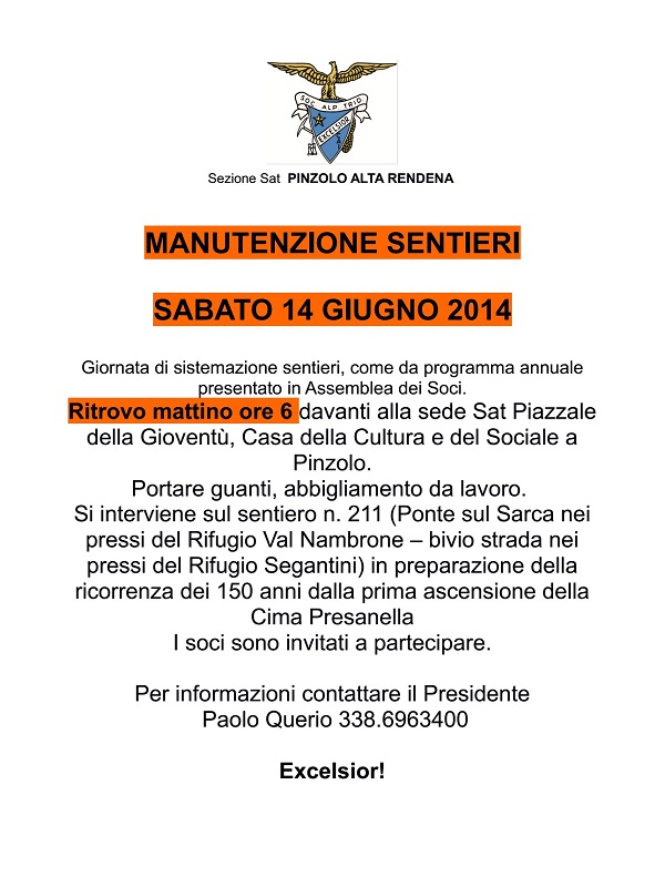 Sat Pinzolo Alta Rendena manutenzione sentieri 14.6.2014