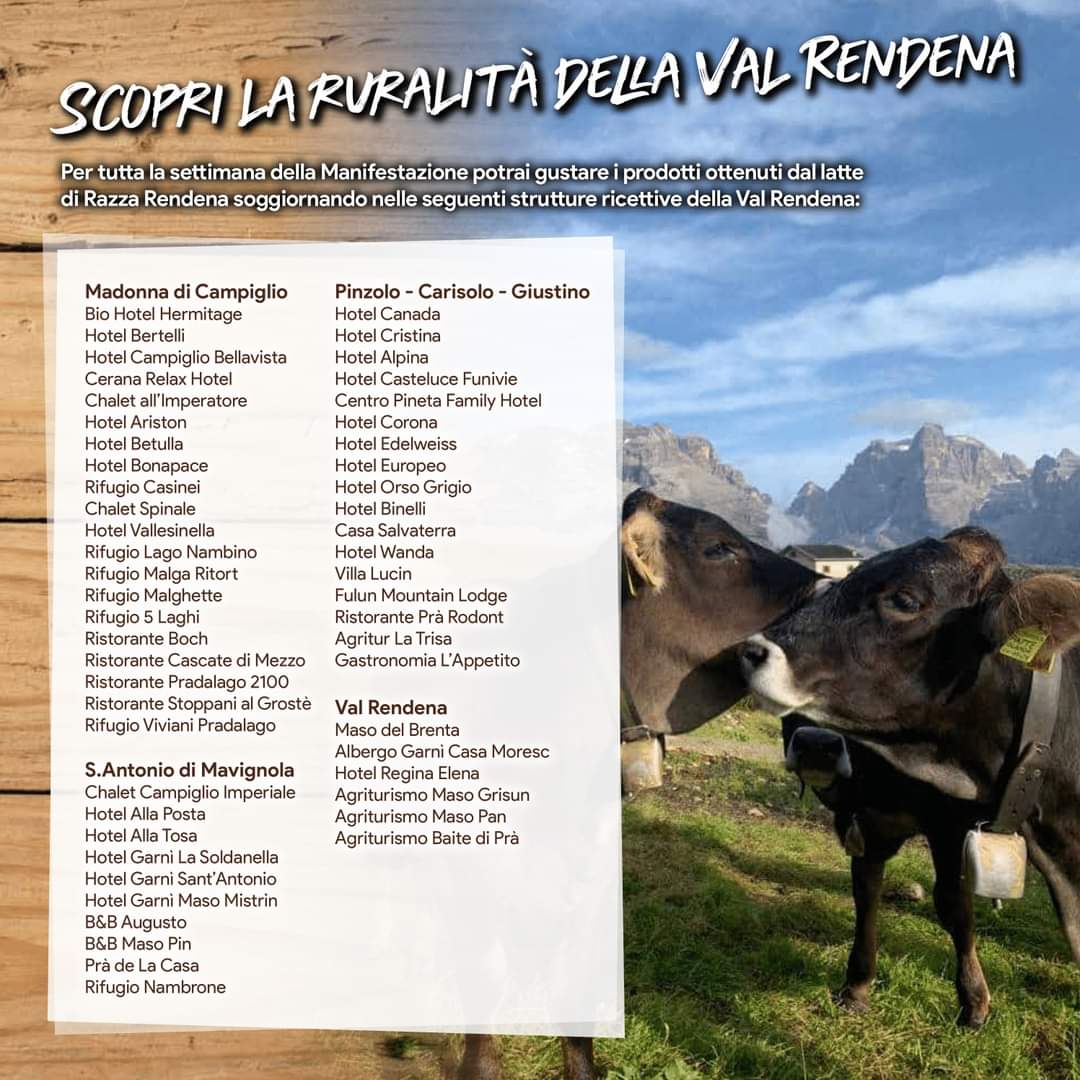 anche per l’edizione 2024 la Pro Loco di Pinzolo e l’Unione Allevatori Val Rendena, organizzatori dell’evento “Giovenche di Razza Rendena. Sfilata e… dintorni”, estenderanno a tutte le strutture ricettive della val Rendena l’iniziativa “Scopri la ruralità della Val Rendena”.