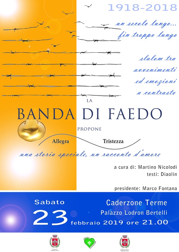 La Banda di Faedo, in collaborazione con la Banda comunale di Caderzone Terme, propone sabato 23 febbraio 2019 la serata Allegra Tristezza: una storia speciale, un racconto d’amore.