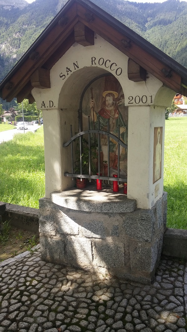 Si festeggia oggi san Rocco (Rocco di Montpellier, nato in Francia a metà del Trecento e morto a Voghera, nella notte tra il 15 e il 16 agosto 1376/1379). Pellegrino e taumaturgo francese, è venerato come come protettore dal flagello della peste. Molto raffigurato nelle chiese della val Rendena, lo troviamo ad esempio sulla facciata della cappella di sant’Antonio a Mavignola; al santo è dedicata anche una cappella a Darè (la cappella di san Rocco, eretta in occasione della peste nel 1579 e riedificata nel XIX secolo), il ponte che collega i due abitati di Carisolo e Pinzolo (da Baldino) e il grazioso capitello eretto nelle vicinanze. San Rocco è anche il Patrono di Massimeno.