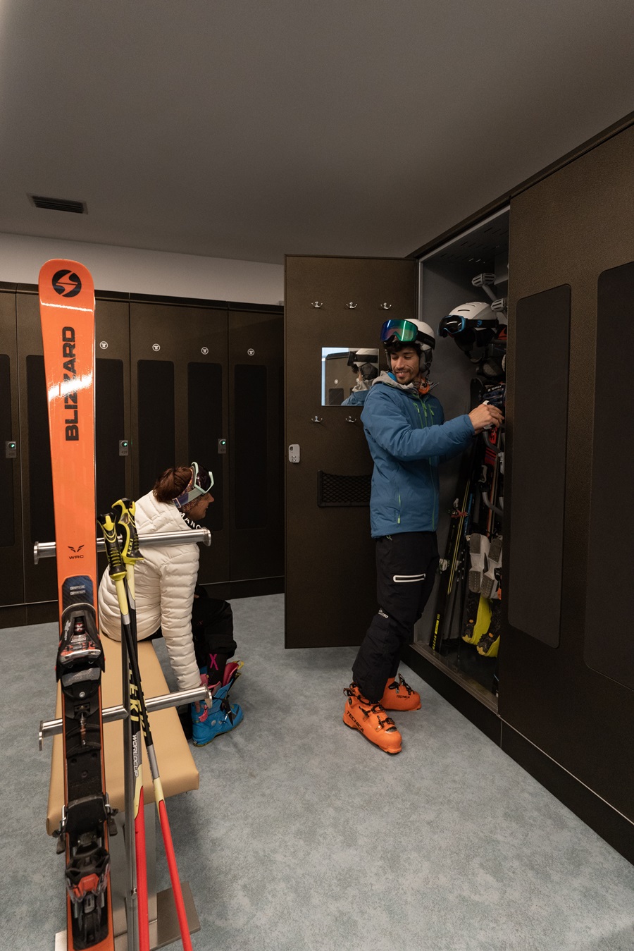 Il nuovo deposito sci a Madonna di Campiglio dove puoi lasciare in sicurezza e all’asciutto la tua attrezzatura. Un ambiente confortevole e moderno allestito con armadietti dotati di sistema di asciugatura e supporti riscaldati per scarponi, guanti e caschi. Il locale è allestito con armadi da 2 e 4 persone e si trova a 15 metri dalla telecabina dello Spinale ed è contiguo all’Apres Ski Ober 1 ed all’Hotel Oberosler.