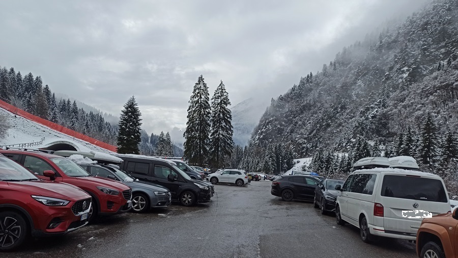 Dopo la nevicata della notte tra sabato e domenica, è tornato il sole sulla nostra zona, anche se alternato da annuvolamenti e nebbie basse. Nelle ore notturne sono caduti altri 30 cm di neve fresca in quota e una decina di centimetri anche a Pinzolo. Sopra i duemila metri l’accumulo di neve sfiora ormai il metro e mezzo. Il paesaggio è fantastico e tantissimi sciatori hanno approfittato per affollare le piste della skiarea Pinzolo. I parcheggi sono pieni sia alle Funivie in via Bolognini che al Tulot. Il grande afflusso costante di sciatori rende ormai urgente la realizzazione di posti auto interrati alla partenza della telecabina a Pinzolo perchè l’utilizzo dei prati adiacenti come parcheggio risulta sempre più problematico in caso di piogge e temperature al di sopra dello zero.