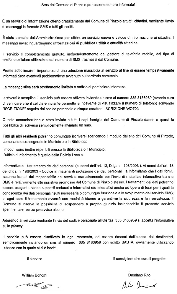 SMS dal Comune di Pinzolo per essere sempre informato!