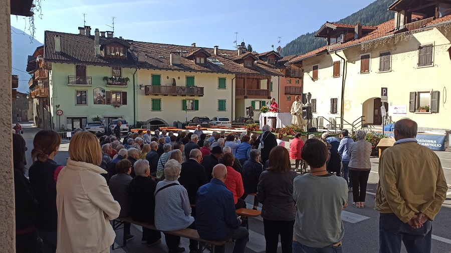 Più di 150 persone hanno partecipato stamattina alla celebrazione della Santa Messa officiata, sull’altare posizionato sopra la fontana di San Gerolamo, da don Stefano di Pinzolo. Alla funzione ha presenziato anche il Sindaco Michele Cereghini e l’assessora Laura Rossini. Durante la Messa è stato ricordato Ivo Pradini che proprio poche ore prima ci ha lasciati. Al termine della celebrazione, tantissimi residenti e turisti hanno partecipato al rinfresco organizzato dalla Pro Loco con la collaborazione di due esercizi pubblici della frazione di Pinzolo, Bavdin Pizza e Blu Bar. Fin dalla mattina, i volontari della Pro Loco sono stati impegnati , in vista anche dello spiedo che verrà preparato in piazza San Gerolamo. Le 300 porzioni sono già state tutte prenotate. La serata sarà anche un’occasione per ringraziare i tantissimi volontari che, nel corso dell’estate, hanno collaborato all’allestimento delle moltissime manifestazioni organizzate dalla Pro Loco di Pinzolo nel corso della primavera/estate.