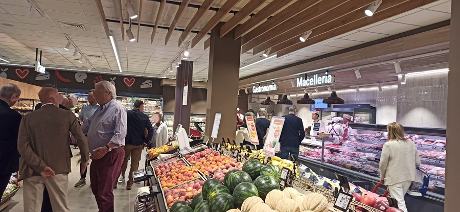 Il supermercato si sviluppa su due livelli per una superficie complessiva di 650 metri quadrati. La ristrutturazione ha interessato ogni aspetto dell’edificio: dai pavimenti, agli arredi, fino ai banchi e alle vetrine refrigerate. Nuova anche la distribuzione degli spazi: al piano terra i reparti freschi (con macelleria e gastronomia), mentre il piano interrato ospita i prodotti secchi, organizzati su scaffali più bassi e illuminati da finti lucernari in grado di adattare la luce durante la giornata, creando un ambiente arioso e accogliente.