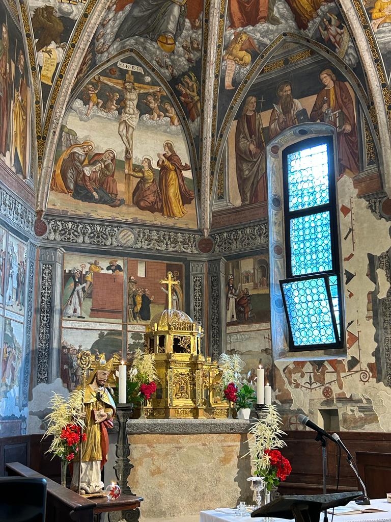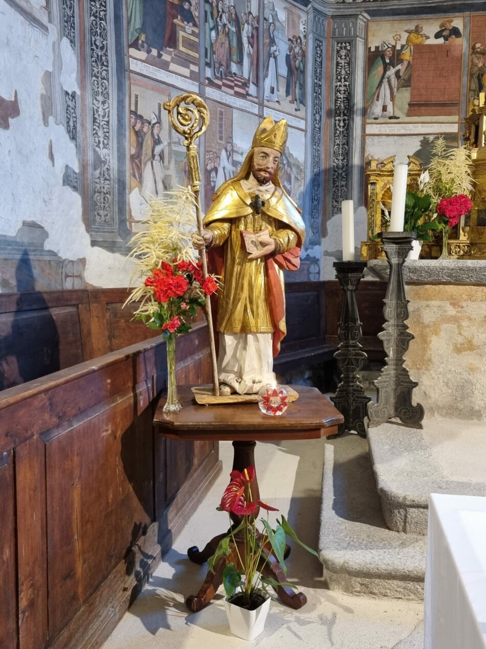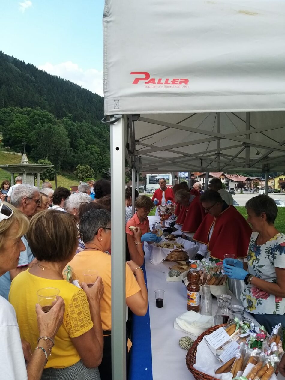 Grande partecipazione alla Messa nella festa di San Vigilio. 250 persone hanno affollato l’antica chiesa per onorare il santo patrono della Diocesi di Trento e custode del nostro cimitero. Alla celebrazione hanno partecipato i volontari con la tunica da confratelli che hanno presentato il pane per la benedizione che poi è stato offerto a tutti con un bicchiere di vino in compagnia. Per l’occasione è stata portata in chiesa l’antica statua lignea del santo del ‘600 custodita di solito in luogo più sicuro. Su tutti e sul mondo la benedizione di Dio per l’intercessione di San Vigilio per la pace.