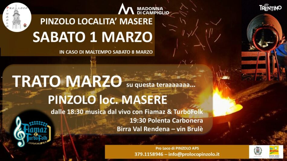 Sabato 1° marzo 2025 tornerà a Pinzolo l’antica tradizione del “Trato Marzo”, dopo l’interruzione dello scorso anno per maltempo. Proprio in questi giorni un gruppo di giovani di Pinzolo si riunirà nella sede della Pro Loco Pinzolo per dividersi i compiti e stilare la lista degli accoppiamenti…