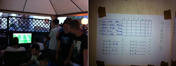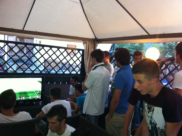 FIFA13 al Café Marconi a pochi passi dall’hotel dove alloggia la squadra… In questo momento (serata di martedì 16 luglio) si stanno disputando le qualificazione per la semifinale e la finale in programma x giovedi sera…