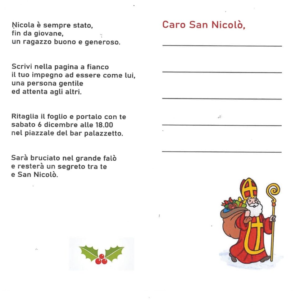 Ogni bimbo ha ricevuto una letterina dove scriverà pensieri e desideri: sabato, alle 18.00, voleranno nel cielo tra le scintille del grande falò di San Nicolò al palazzetto dello sport.