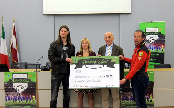 Fra questi fondi anche i 18.000 euro raccolti con la partita di calcio Trentino for Nepal, che lo scorso ottobre ha visto scendere in campo, allo Stadio Quercia di Rovereto, gremito da circa 2000 persone, la Nazionale Italiana Cantanti ed il Soccorso Alpino Trentino. Oggi a Trento, la Nazionale Italiana Cantanti, rappresentata da Enrico Garnero e dal giovane cantante Nick Casciaro, ha simbolicamente consegnato alla Provincia – nelle mani degli assessori Sara Ferrari e Tiziano Mellarini – l’assegno di 18.000 euro che sarà utilizzato per la ricostruzione di un ponte tibetano nella Valle del Langtang. Tutti i soldi raccolti vengono gestiti dal "Tavolo per l’emergenza Nepal", costituito dalla Provincia, da associazioni di volontariato e dalle organizzazioni rappresentative dei lavoratori e del mondo imprenditoriale che ha già finanziato 5 progetti, per complessivi 92 mila euro, destinati alla fornitura di generi di prima necessità, alimentari e sanitari.