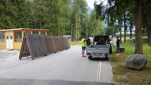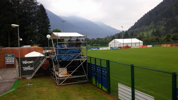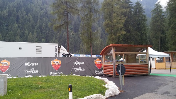 Il forte temporale che ha investito l’alta Val Rendena nel tardo pomeriggio di oggi non ha rallentato i lavori di allestimento del "Rendena Village" alla Pineta di Pinzolo. Fin dal primo mattino, gli operai del Comune di Pinzolo e altre maestranze hanno lavorato intensamente, sotto la supervisione dell’assessore ai Grandi eventi, Giuseppe Corradini. In serata i lavori erano praticamente conclusi e domani pomeriggio il "Pineta" si presenterà in perfette condizioni, pronto ad accogliere i campioni giallorossi (il primo allenamento è previsto intorno alle 16) e le migliaia di tifosi al seguito.