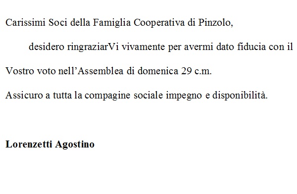 Un ringraziamento ai soci della Cooperativa di Pinzolo