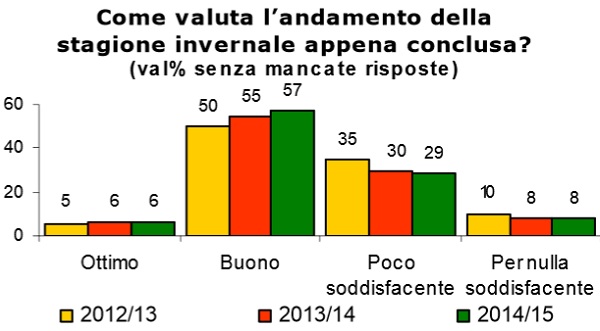 Nel confronto con le valutazioni espresse nelle due stagioni precedenti, il giudizio positivo sulla recente stagione invernale risulta a livello provinciale mediamente più elevato.