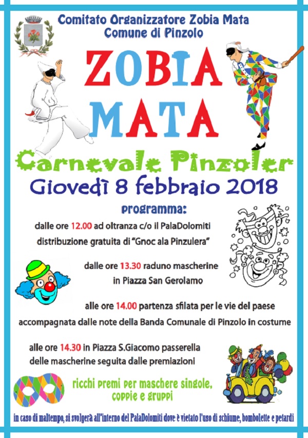 A Pinzolo carnevale è sinonimo di zobia mata ed anche quest’anno la traduzione verrà rispettata con gnocchi e maschere.