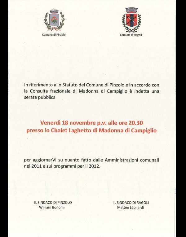 • 18 novembre: Incontro pubblico allo Chalet di Campiglio