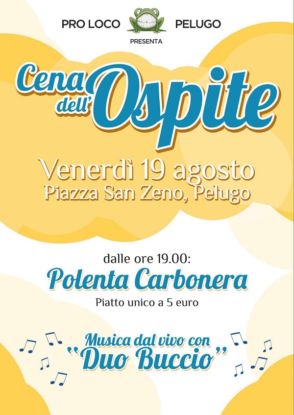 Queste le parole del Direttivo della Pro Loco di Pelugo, che dopo una breve pausa di qualche giorno, saranno ancora occupati ai preparativi per la “Cena dell”™Ospite” in Piazza San Zeno, venerdì 19 agosto, dove a partire dalle 19:00 serviranno la polenta carbonera, accompagnata da buona musica dal vivo.