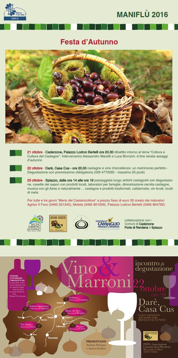 Festa di tre giorni organizzata dai Castanicoltori Val Rendena, all’interno di un Progetto Maniflù, in collaborazione con i Comuni di Spiazzo, Caderzone e Darè, attorno al castagno e alla castagna.