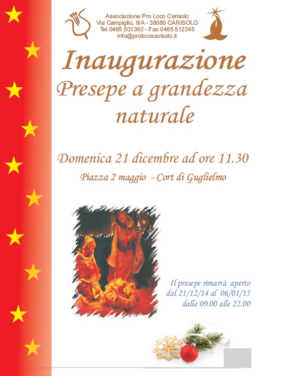 • 21 dicembre – Inaugurazione Presepe a grandezza naturale