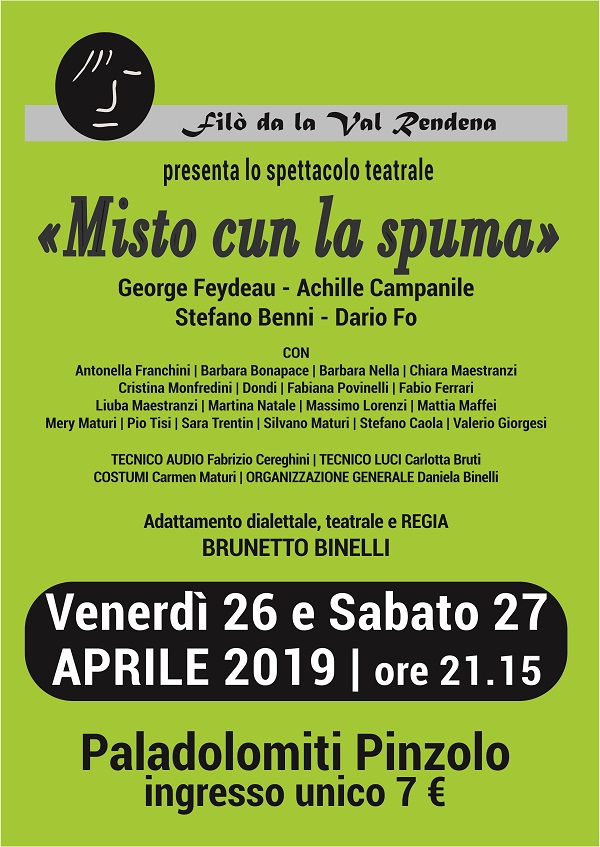 Venerdì 26 e sabato 27 aprile presso il Paladolomiti , il Filò da la val Rendena porterà in scena la nuova commedia “Misto cun la spuma.” L’ inizio della rappresentazione è previsto alle 21.15 .