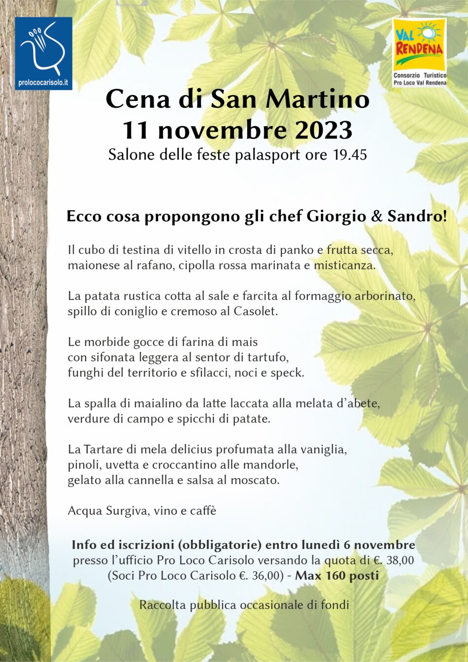 – SABATO 11 NOVEMBRE – cena di San Martino (prenotazioni obbligatorie